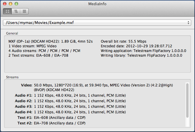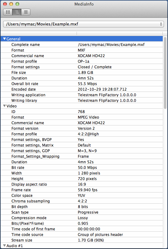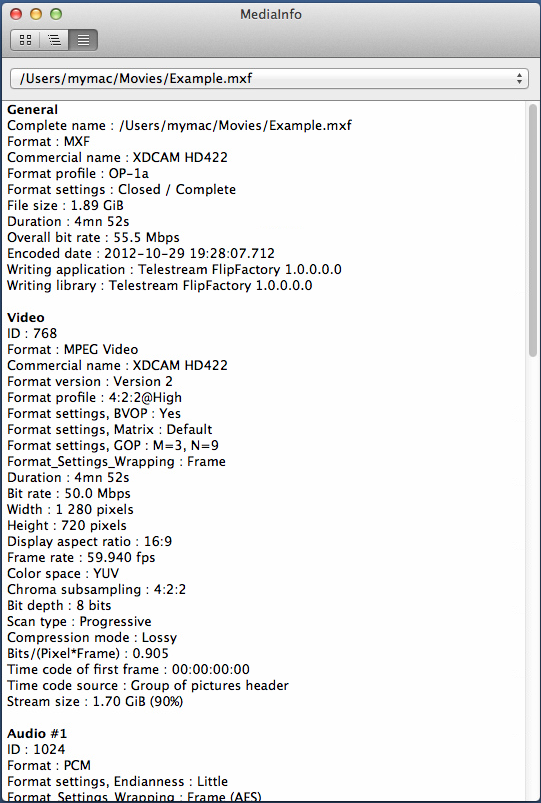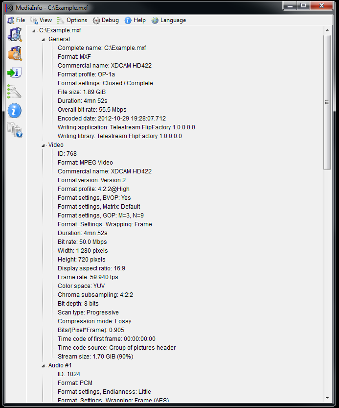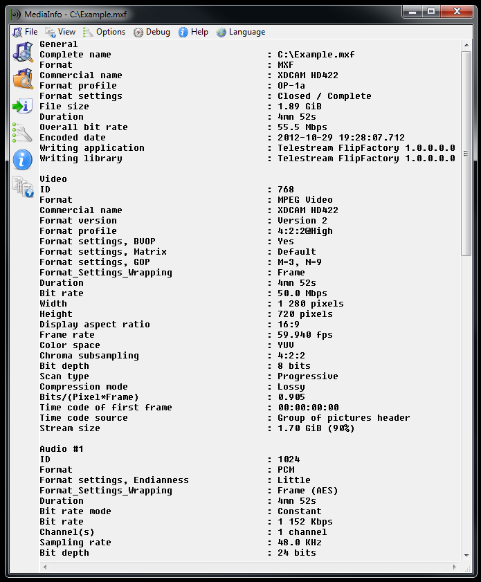 C:>mediainfo Example.mxf